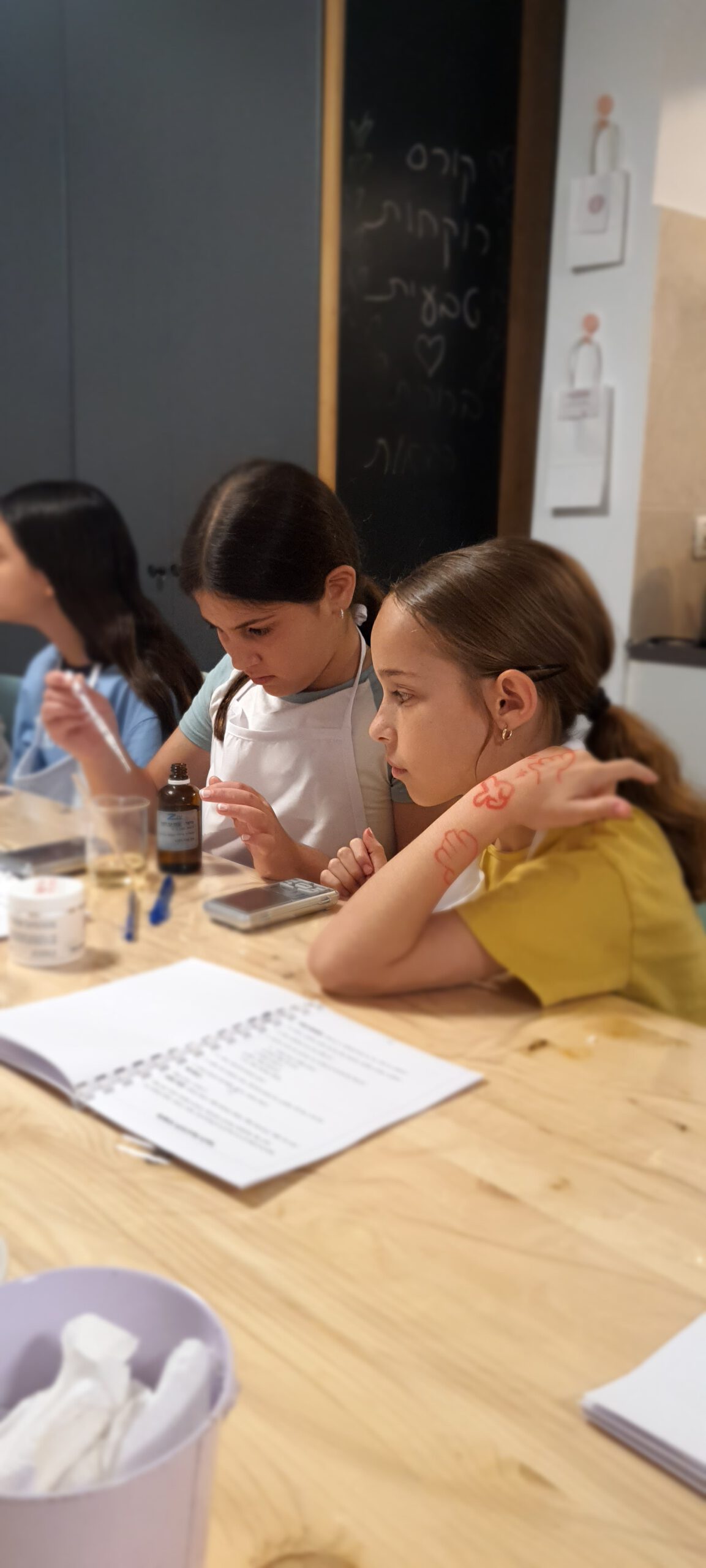 נעמיק בחומרי הגלם (חמאות, שמנים צמחיים, תמציות ארומתרפיות, אבקות צבע, פרחים ועוד) – נריח, נתמרח, נטעם ונרקח מגוון מוצרים טבעיים המותאמים לגיל לפנים, לגוף ולאווירה :