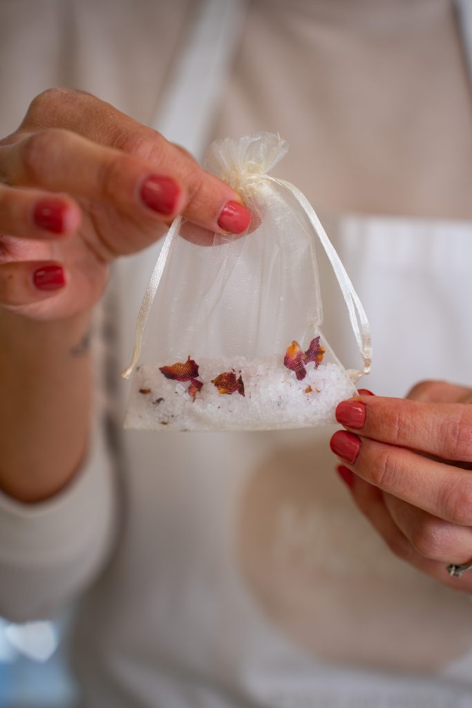 1. מכניסים לשקית אורגנזה 2 כפות של מלח גס.