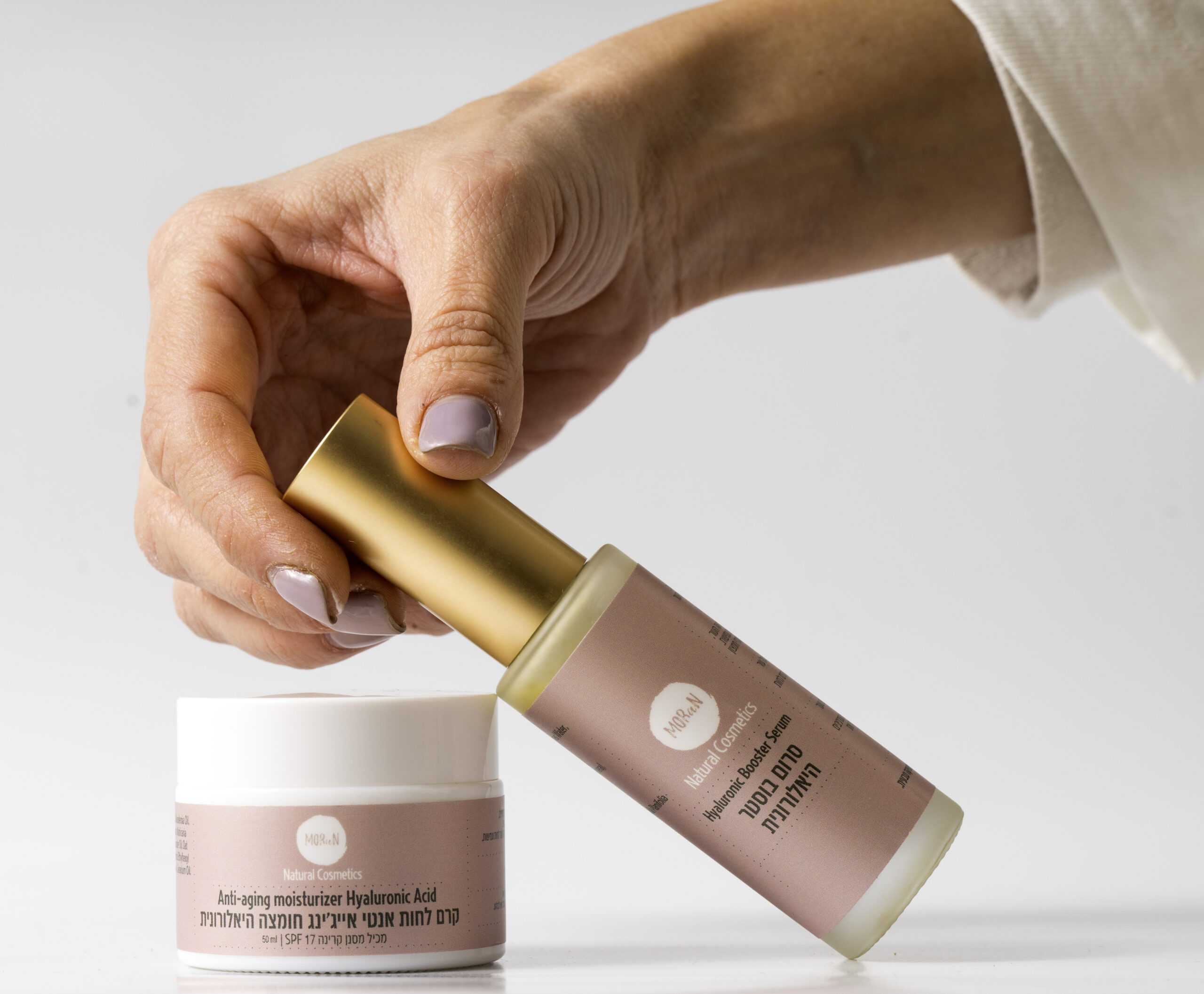 שגרת בוקר טבעית, קלה ופשוטה בשני שלבים : 1 – סרום בוסטר היאלרונית – למרוח בכל בוקר כמות קטנה בתפיחות קלות עד לספיגה. 2 – קרם לחות אנטי אייג'ינג חומצה היאלרונית – לאחר הבוסטר יש למרוח כמות קטנה בתפיחות קלות לקבלת לחות והזנה. יש להשתמש במוצרים רק למטרה לשמו נועד ובהתאם להוראות השימוש. אין להשתמש אם ידועה רגישות לאחד המרכיבים במוצר. במקרה של רגישות לעצור מיד את השימוש במוצר. אין לבלוע. להימנע ממגע בעיניים. להרחיק מילדים. לא למאכל.